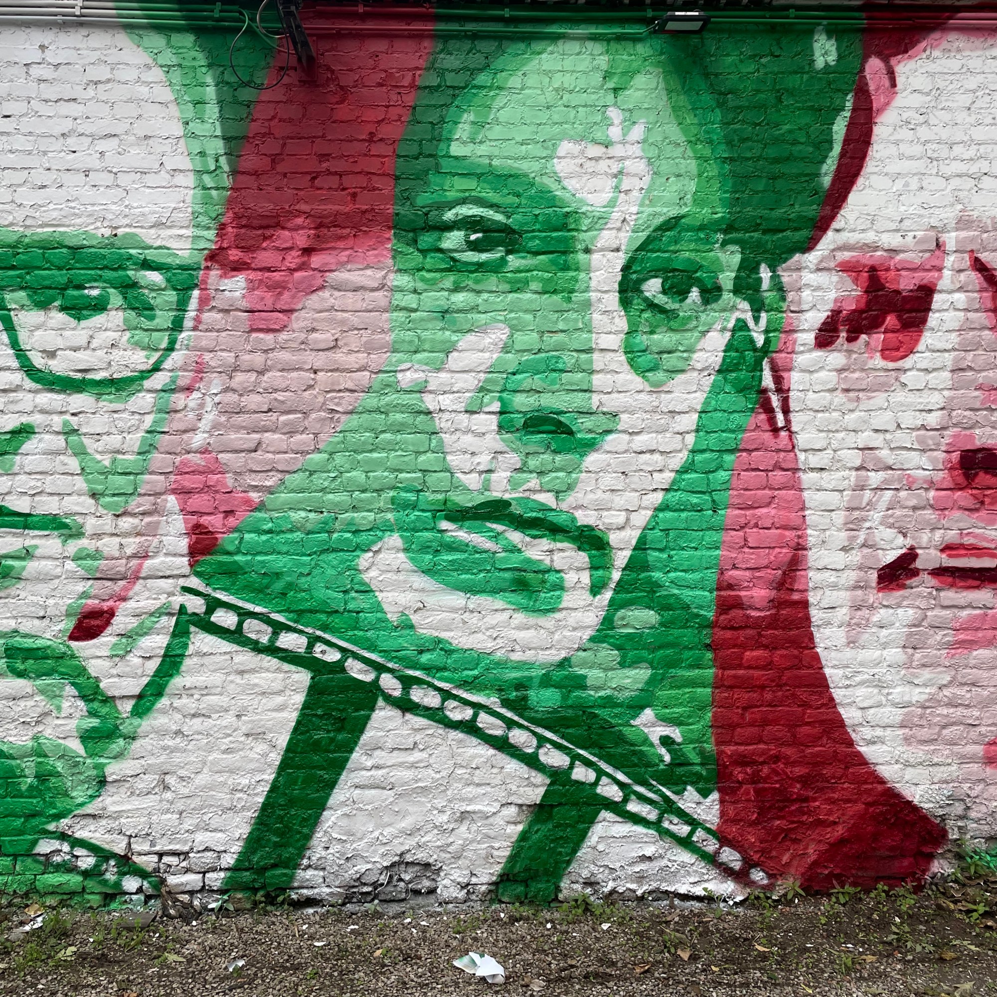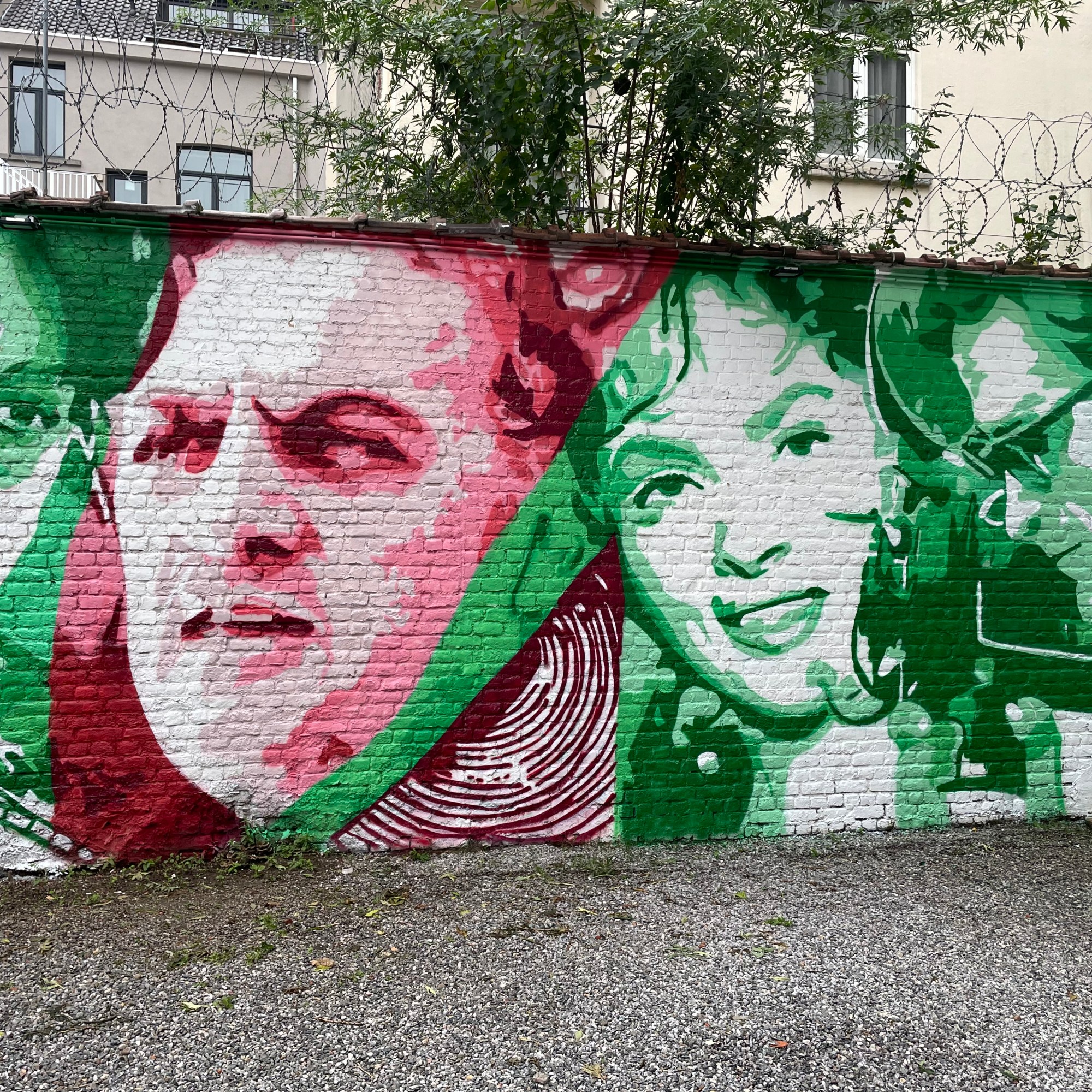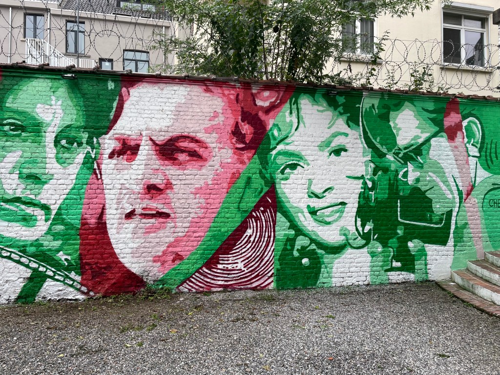 Dal 18 al 23 ottobre 2023 Chekos’art ha realizzato il suo nuovo murale di circa 60 metri quadrati lungo il muro perimetrale del cortile dell’Istituto Italiano di Cultura di Bruxelles.